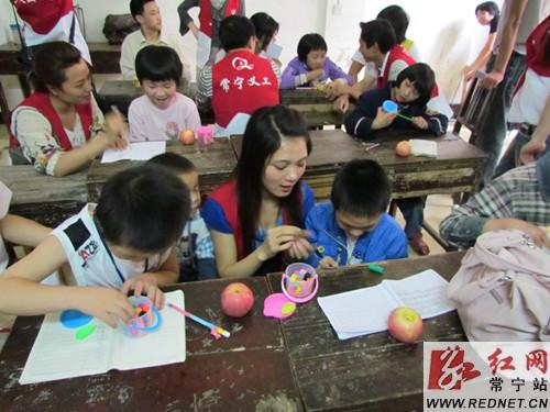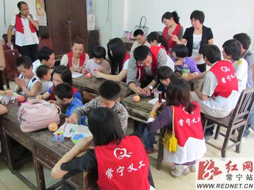 “谢谢…阿姨,我一定…好好…学习,将来…用自己的…实际行动来…回报大家”,这是接受救助的12岁智障男孩彭景怀当时的真实感言。据悉,在“六一”儿童节到来之际,为了让市特教班的12名智障儿童度过一个快乐儿童节,在市义工协会黄筱衡义工发出的慰问倡议下,“宜城义工”们再次相约,2011年5月27日下午3点整,义工吴丹、黄筱衡、汪娟等24人,带着每人自行购买的儿童玩具、学习用品和水果等,对特教班的12名智障学生进行爱心救助活动。当天下午在特教班的教室内,义工们自发的分成2人一组和特教学生进行玩游戏、聊天、分辨东西和唱歌等互动活动。义工们用生动的互动方式让特教小朋友在快乐中学习课外知识,现场气氛活跃而温馨。中途特教班全体学生为义工们进行了唱歌表演。也许他们的声音不悦耳,也许他们的表情不丰富,但是他们是那样的专心,那样的淳朴,义工们也被这种气氛感染了,和着节拍自发的歌唱起来。最后,在义工吴丹的带领下,义工们把自己带来的六一礼物为他们逐一发放,并当场向特教班师生承诺以后会实行每年2次的定期救助,同时和特教班的小朋友结成“3+1”的帮扶小对子,切实帮助12名智障儿童的走出阴影,让他们能够和其他的小朋友一样正常学习。在义工们离别之时,特教班班主任刘惠兰老师带领全体特教学生跑出来为义工送行,并对义工们表示,这是他们六一儿童节收到的最好的礼物。