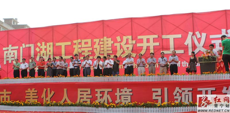 市领导刘志湘、詹国发、邓秋云、周国佑、李新华、张永英、王若君、魏中发、张军、刘景友、黄道安、谢阳当、廖伦龙、李冬启、贺幸禄、郭祥君等出席开工仪式。开工仪式由市委常委、政法委书记、南门湖工程建设指挥部指挥长邓秋云主持。