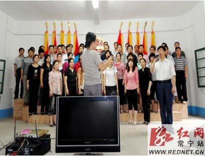 “长江长城,黄山黄河,在我心中重千斤......”“团结就是力量,这力量似铁,这力量似钢......”每天下午5点到7点,宜潭乡政府礼堂内热闹非凡,该乡政府机关干部、乡直支部工作人员、中学部分教师共53人正紧锣密鼓地排练红歌,为即将到来的常宁市颂党爱党群众歌咏大赛做好充分准备。