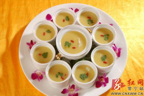 相传麻姑得道成仙,南岳半山亭一带,曾有一年突发瘟疫,麻姑想尽食疗种种办法,救济百姓。麻姑最终将自己珍藏千年的灵芝药材,加入玉米和灵芝泉,用神(鳙)鱼一起熬制三天三夜。将其羹汤分给百姓服食,疫情得控。麻姑寿羹修善结缘,助人长寿,从后麻姑寿羹成为仙家珍食。现经创新厨艺,寿羹更具特色,原料普通,清香、滑爽、营养丰富、回味无穷。有诗作证:麻姑仙食,芝汁治疾,长生不老,寿寿珍奇。
