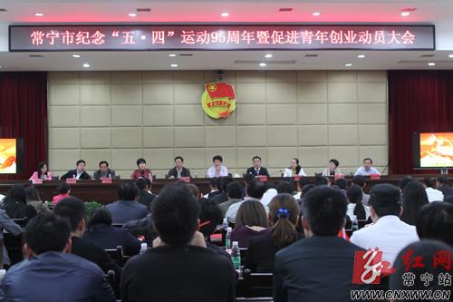 (图为我市召开纪念“五·四”运动95周年暨促进青年创业动员大会)