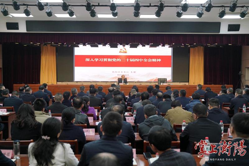 朱健紧紧围绕党的二十届四中全会精神,重点从准确把握“十四五”时期我国发展取得的重大成就、深刻认识党的二十届四中全会的重大意义、科学研判“十五五”时期经济社会发展面临的重大机遇、全面掌握“十五五”时期经济社会发展的重大原则、深入理解“十五五”时期经济社会发展的重大部署、全力以赴抓好党的二十届四中全会精神贯彻落实等7个方面,对党的二十届四中全会精神进行了阐释和解读。他指出,每隔五年,结合历史方位制定未来发展的五年规划,是我们党治国理政的独特政治优势。“十四五”时期我国发展取得了重大成就,衡阳也交出了五张满意答卷,这些成绩的取得,根本在于以习近平同志为核心的党中央领航掌舵,在于习近平新时代中国特色社会主义思想科学指引,在于省委、省政府高度重视、高看厚爱。同时,也在于全市上下追求卓越、努力拼搏、攻坚克难、永不言弃。